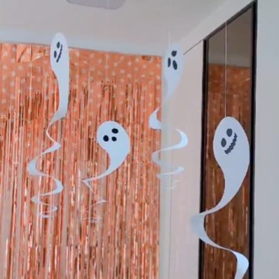 유령들 사이즈가 다르니까 실 길이도 조금씩 다르게 해서 여러 장 붙여주시면 할로윈 꾸미기 끝이에요. 진짜 쉽죠?